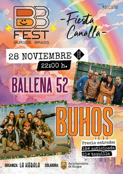 El próximo 28 de noviembre, la Sala Andén 56 abrirá sus puertas para recibir el BBFEST Fiesta Canalla 25. El público podrá disfrutar de dos bandas que saben encender el escenario. Los Buhos, con su mezcla de rock, ska y reggae, llegan con un repertorio que invita a corear cada estribillo. Junto a ellos, los burgaleses Ballena 52 presentarán canciones cargadas de emoción y energía, incluyendo su aclamado tema "Revolución".